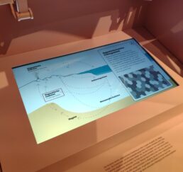 Der Besucher kann in dieser Applikation Informationen zum kreislauf der Gesteine nachschlagen. Die Applikation wird auf einem Raspberry Pi betrieben, welcher per Strom an/aus geschaltet wird und selbständig ohne weiteres Zutun startet.