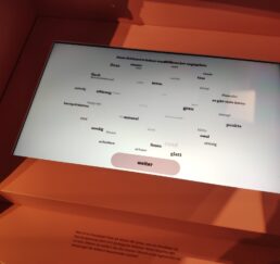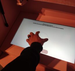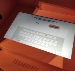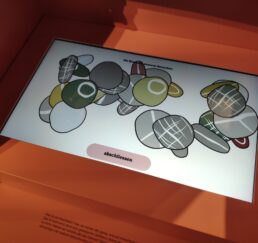 Der Besucher kann seine Vorstellung eines Kiesels erfassen und mit den Vorstellungen der anderen Museumsbesucher vergleichen. Er gibt Grösse, Stichworte und seine Bildvorstellung an. Diese Angaben werden über NodeJS lokal in einer JSON-Datei gespeichert. Ein Badword-Filter unterbindet das Ausspielen von unpassenden Eingaben. Die Applikation wird auf einem Raspberry Pi betrieben, welcher per Strom an/aus geschaltet wird und selbständig ohne weiteres Zutun startet.