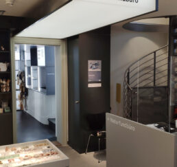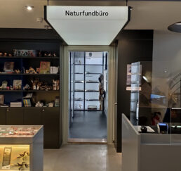 Um den bislang eher versteckten Eingang des Naturfundbüros im Museum aufzuwerten haben wir ein heruntergehängtes, dimmbares Leuchtelement realisiert, welches den Weg zum Naturfundbüro zeigt.